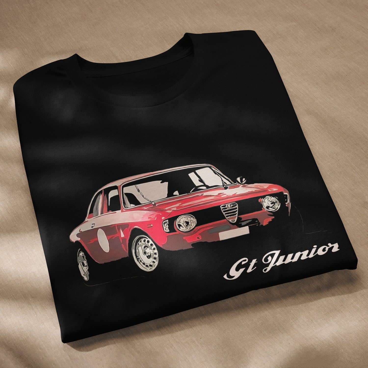 Discover our exclusive t-shirt dedicated to the Alfa Romeo Giulia GT Junior, an icon of Italian design. Made from high-quality cotton, this t-shirt celebrates the timeless appeal of the legendary sports coupé. Perfect for fans of classic cars and vintage style, it offers exceptional comfort and an authentic retro style. Wear your passion for Alfa Romeo with this one-of-a-kind t-shirt. Available now